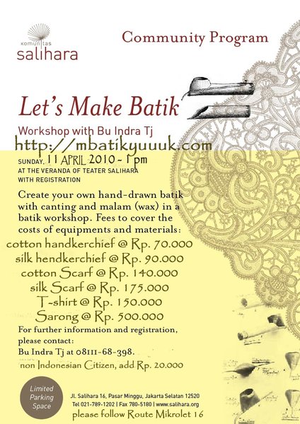 silahkan untuk yang baru mau mencoba membatik ataupun bagi yg sudah mau melakukan ‘advance’ mbatik atau pewarnaan kedua, silahkan…bergabung