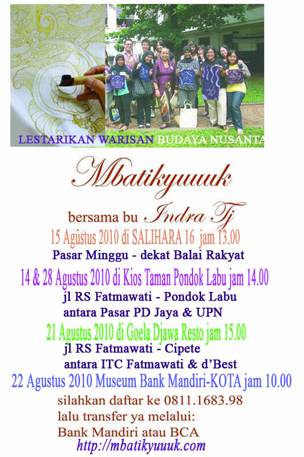 MBATIK YUUUK BULAN AGUSTUS 2010 Share this: Click to share on Facebook (Opens in new window) Facebook Click to share on X (Opens in new window) X Click to share on LinkedIn (Opens in new window) LinkedIn Like Loading... Related