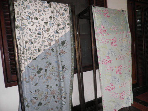 Batik Cirebon ‘Pagi Sore’ or Day & Night (left) – Batik Pekalongan ‘Buketan’ or a Bunch of Flower influence by the Dutch (right)