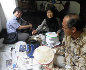 Guests from Melbourne Australia and Malaysia are making Batik companied by Mr. Basuki (Indra’s husband)