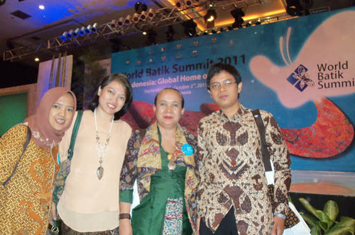 WORLD BATIK SUMMIT 28 SEPT – 2 OCT 2011 @ THE OPENING CEREMONY – IT WAS OPEN BY THE PRESIDENT OF REPUBLIK INDONESIA WITH ALL PRESIDENTS ALL SPEAKERS @ GROUP 2 WITH YOGYAKARTA DELEGATES : MRS ATY & MR AJI WITH BANDUNG DELEGATES : MRS KEN ATIEK & FRIEND WITH EXHIBITERS : MRS DATIE & MS NOVI (BC) WITH SPEAKERS @ PARANG KENCANA @ ARIEF WICK, PEKALONGAN BOOTH Share this: Click to share on Facebook (Opens in new window) Facebook Click to share on X (Opens in new window) X Click to share on LinkedIn (Opens in new window) LinkedIn Like Loading... Related