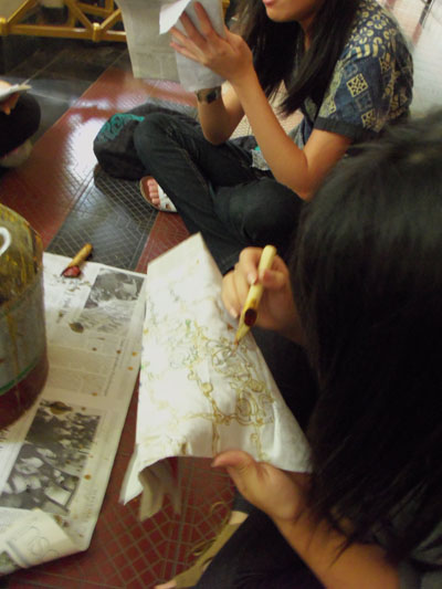 I bring my students to feel the way the traditional people making a pattern in a piece of fabric that is called Batik