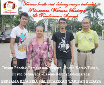 Kami atas nama Mbatikyuuuk Heritage Walk menyampaikan terima kasih kepada SAHABAT-SAHABAT yang telah mendukung kegiatan Penelusuran Sejarah Kedatangan Bangsa Tionghoa ke Nusantara dan Warisan Budaya berupa Batik Pesisir, mulai dari Dusun Phodek , Desa Rang Perang Daya,Kecamatan Proppo,Kabupaten Pamekasan- Madura kemudian lanjut menelusuri kedatangan bangsa Tiongkok ke Tuban dan mendirikan Klenteng Kwan Sing Bio ditepi laut. Perjalanan dilanjutkan ke Desa Kedungrejo. Kecamatan Kerek, Kabupaten Tuban, untuk mengenal proses pembuatan kain khas Tuban yang dinamai Kain Gedog yang di Lestarikan oleh Ibu Uswatun (generasi ketiga dari pembuatan kain Gedog yang sudah langka) dan kita mencoba membatik di kain Gedog, selanjutnya perjalanan dilanjutkan ke Desa Setunjung, Kelurahan Karas Jajar, Kecamatan Pancur, Kabupaten Rembang untuk mengenal lebih dekat kehidupan para pembatik tradisional dan melihat bagaimana pengusaha Batik di Kecamatan Lasem memberdayakan masyarakat setempat. Malam harinya kita menginap disebuah Hotel yang sangat menarik karena mempunyai restaurant yg masih ber Arsitektur Cina Kuno yang menjadikan kebanggaan pemerintah daerah Rembang.