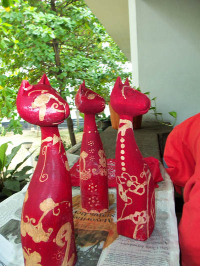 BATIK WORKSHOP ON WOOD – FEB 5, 2012 Mrs Enno expression Ms. Sofie love Batik making. Giving more pattern at the Cat body. Before coloring process. Bathing the Cats Drying process CHARMING CAT ALL BATIK N CAT LOVERS Share this: Click to share on Facebook (Opens in new window) Facebook Click to share on X (Opens in new window) X Click to share on LinkedIn (Opens in new window) LinkedIn Like Loading... Related