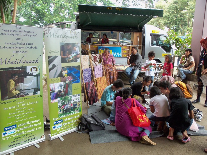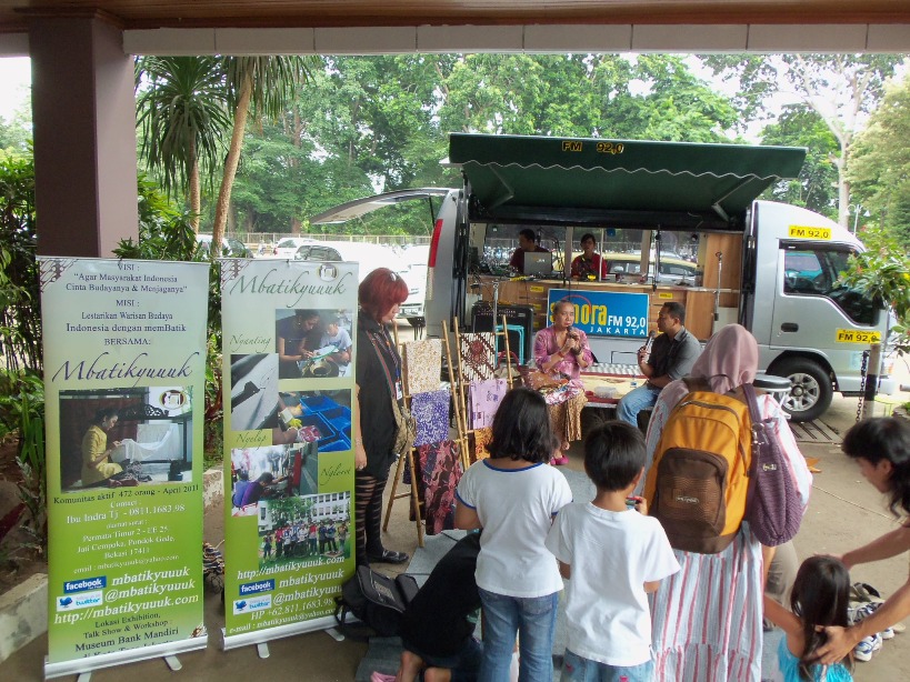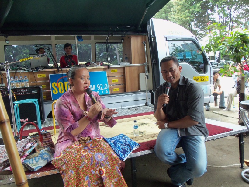 BATIK SHARING KNOWLEDGE – SONORA RADIO – KOMPAS GRAMEDIA FAIR – MARCH 3, 2012 BINCANG-BINCANG DI RADIO SONORA & MEMPERKENALKAN BATIK CANTING & QUIS TEBAK RAGAM HIAS BATIK Share this: Click to share on Facebook (Opens in new window) Facebook Click to share on X (Opens in new window) X Click to share on LinkedIn (Opens in new window) LinkedIn Like Loading... Related