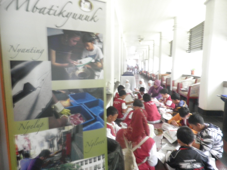 Small EXHIBIT introducing the Batik : Solo, Yogya, Lasem, and shows the different between Hand written Batik and Printing Machine Batik.