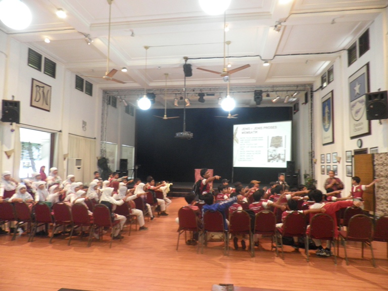 Mrs. Indra Tj make a QUIS – which one is the Hand Written Batik and which one is the Printing Machine Batik. The students were very anthusiastique.