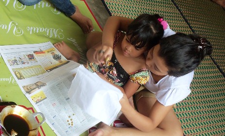 Dita the 4 years old girl also want to make Batik with Miss Arin help