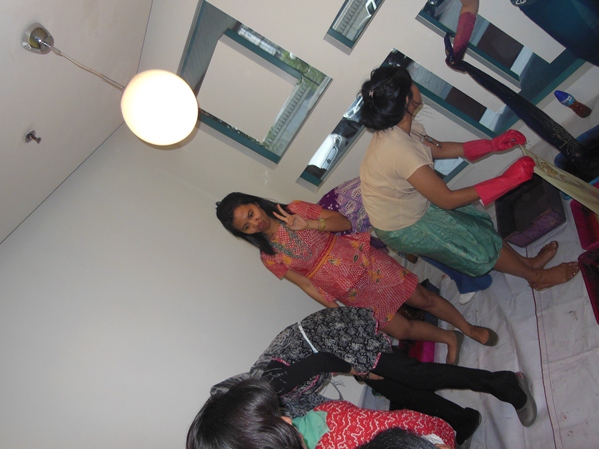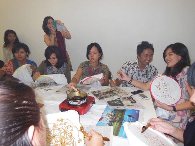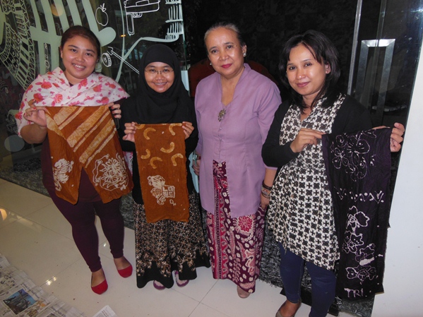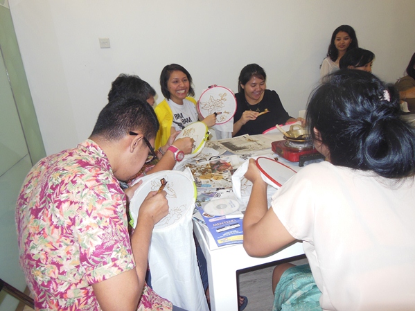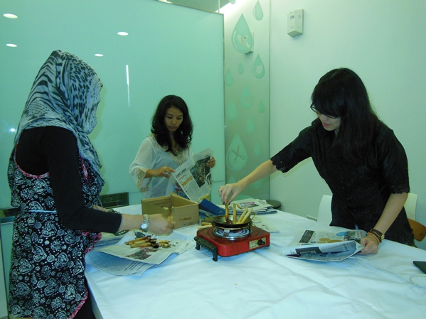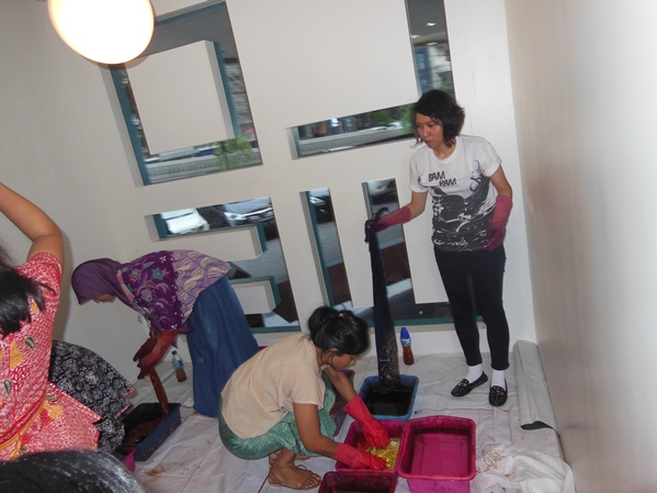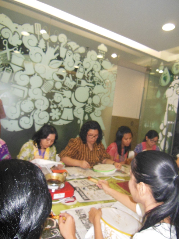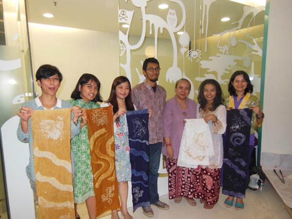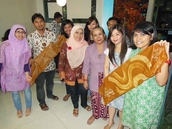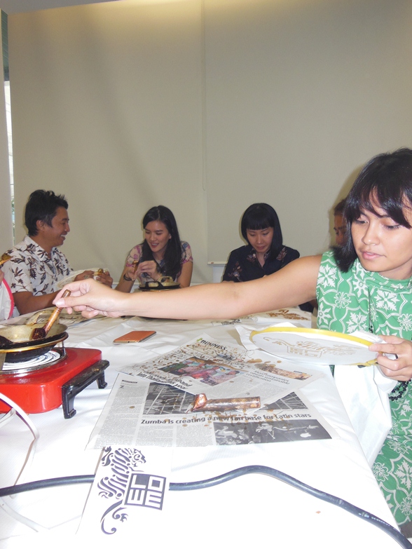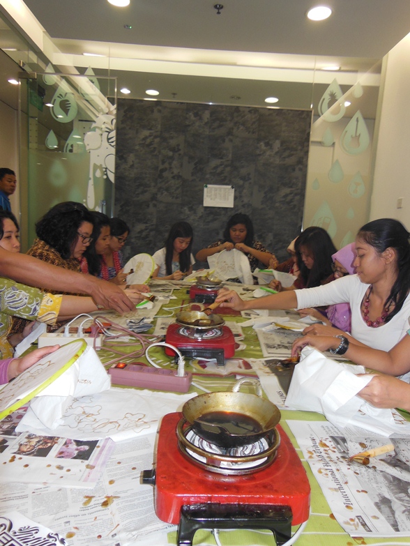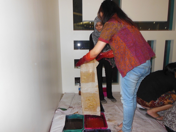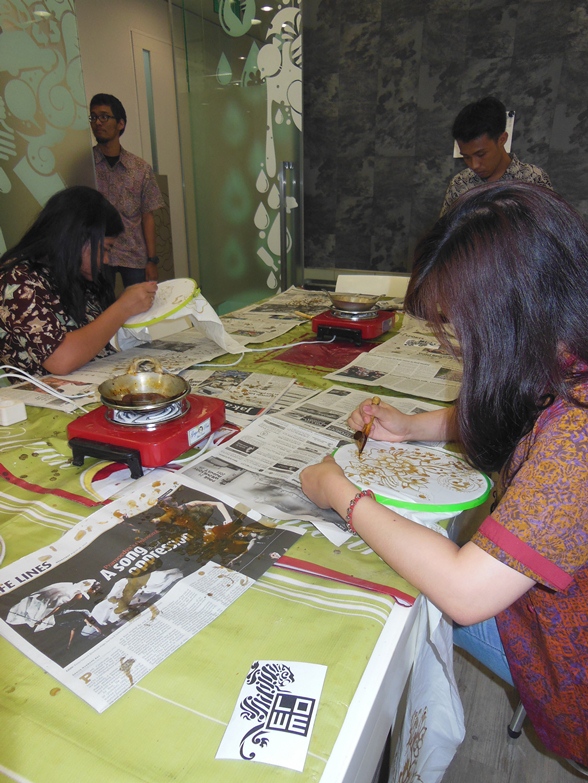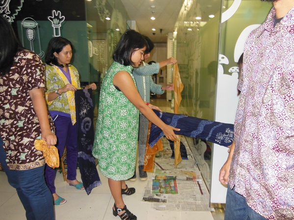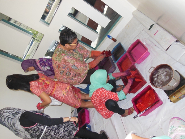 Some of the LOWE employee try to make their own Batik Scarf.