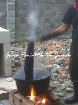 BATIK is a long process start from preparing the ‘mori’ (fabric), drawing the pattern, writing using CANTING and ‘malam’ in the both side, coloring using synthetic color or natural dye, peel of the ‘malam’ that called NGLOROT, wash the product, last process by dry it in shade.