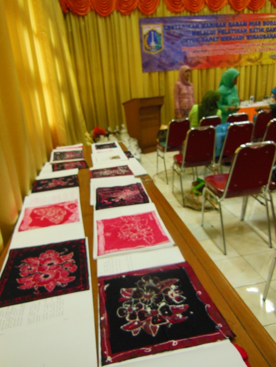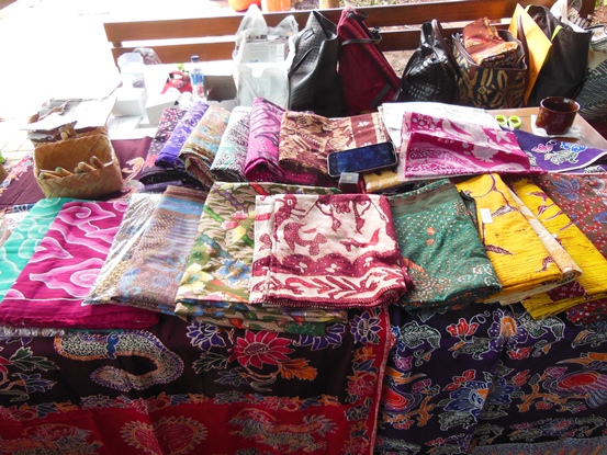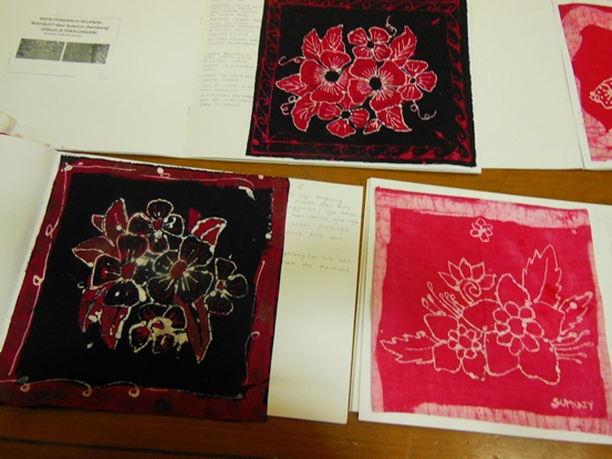 HARI KEDUA : MATERI AJAR di halaman Kelurahan Cibubur, berbagai BATIK TULIS dari berbagai daerah di INDONESIA dan batik CAP, PRINTING sebagai perbandingan…dan belajar membedakan