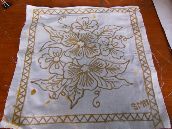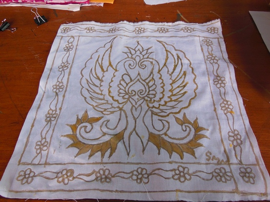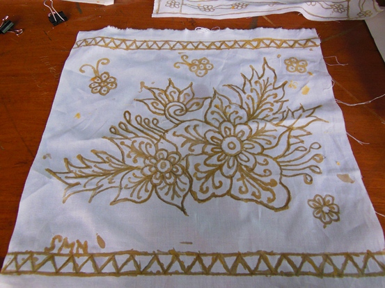HARI KEDUA : mulai mencanting berbagai ukuran saputangan sebagai contoh produksi