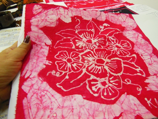 HARI KEDUA : Ibu Sri memberikan sentuhan untuk memberi motif REMEKAN