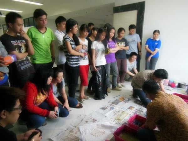 Mahasiswa DKV Universitas Bunda Mulia adakan SEMINAR & WORKSHOP BATIK dibawah bimbingan salah satu Dosennya Ibu Henny Hidayat, S.Sn, M.Des mengundang Ibu Dr Ir. Indra Tjahjani, S.S, MLA, MMSI pemilik kegiatan ‘GRIYA PENI – MBATIK YUUUK’ pada tanggal 24 Mei 2014
