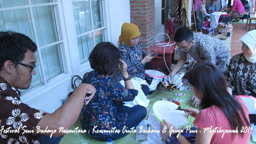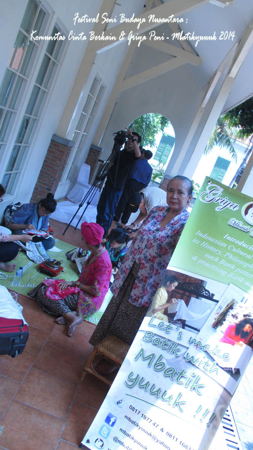 GRIYA PENI – MBATIK YUUUK bersama KOMUNITAS CINTA BERKAIN berpartisipasi dengan mengadakan BATIK WORKSHOP, agar masyarakat mengenal SEJARAH BATIK, FILOSOFI BATIK, RAGAM HIAS BATIK dan juga teknik membatik.