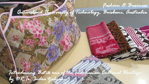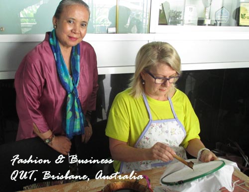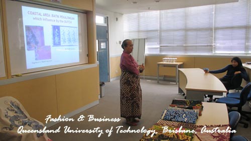 QUT – QUEENSLAND UNIVERSITY OF TECHNOLOGY, BRISBANE, AUSTRALIA – BATIK WORKSHOP QUT, FASHION and BUSINESS SCHOOL, having BATIK WORKSHOP with DR. IR. INDRA TJAHJANI, SS, MLA, MMSI on SEPTEMBER 2, 2014 Share this: Click to share on Facebook (Opens in new window) Facebook Click to share on X (Opens in new window) X Click to share on LinkedIn (Opens in new window) LinkedIn Like Loading... Related
