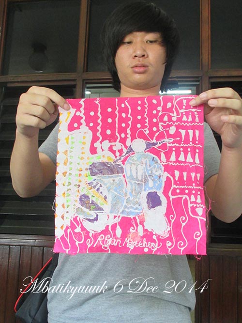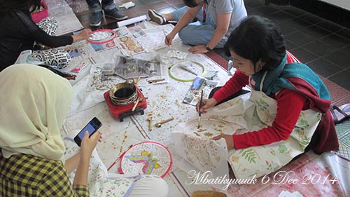 WARNA WARNI BATIK-KU – BATIK WORKSHOP 6 DESEMBER 2014 Mari mencoba pengalaman baru dalam membatik dan mewarnai kain, bersama Ibu Indra Tjahjani dan putra – putrinya membuat karya ukuran : 28 x 28 cm atau 28 x 110 cm Silakan daftar dg sms 0811 1683 98 lalu transfer via BCA MMM Share this: Click to share on Facebook (Opens in new window) Facebook Click to share on X (Opens in new window) X Click to share on LinkedIn (Opens in new window) LinkedIn Like Loading... Related