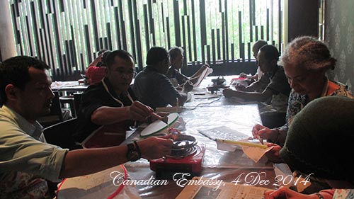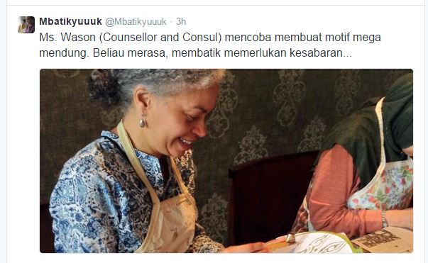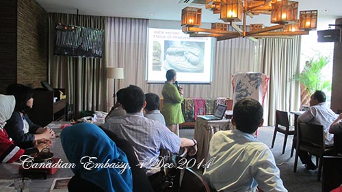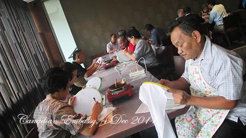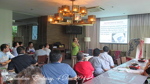 INTRODUCING INDONESIA CULTURAL HERITAGE : CANADIAN EMBASSY JAKARTA – 4 dec 2014 Terima kasih, teman-teman dari Kedutaan Besar Kanada di Jakarta The histroy : 13th Century at Pradnja Paramitha Statue The Definition : BATIK, is a piece of art work, as long as the process in making pattern is using ‘malam’ or ‘wax’ Share this: Click to share on Facebook (Opens in new window) Facebook Click to share on X (Opens in new window) X Click to share on LinkedIn (Opens in new window) LinkedIn Like Loading... Related