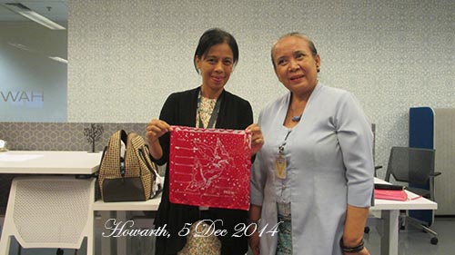 BATIK – KNOW MORE ABOUT BATIK – 5 DECEMBER 2014 JOCELYN, from Howarth Indonesia, Jakarta want to share to her friends more about BATIK Share this: Click to share on Facebook (Opens in new window) Facebook Click to share on X (Opens in new window) X Click to share on LinkedIn (Opens in new window) LinkedIn Like Loading... Related