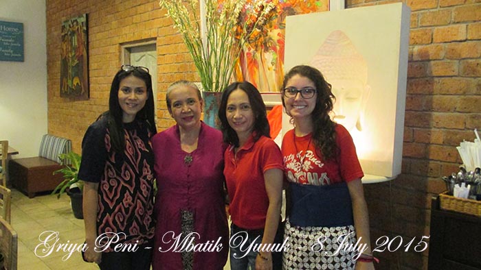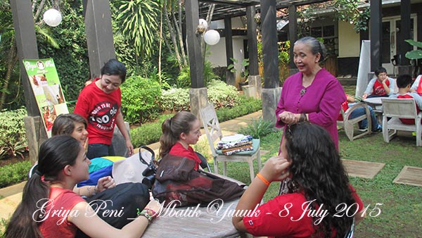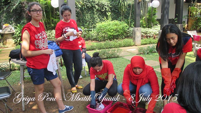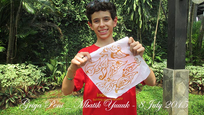 INTERCHANGE STUDENTS FROM SAO JOSE DOS, BRAZIL – JAKARTA 8 JULY 2015 Jakarta, 8th July 2015 ” GRIYA PENI – MBATIK YUUUK ” : INTERCHANGE STUDENTS FROM SAO JOSE DOS, BRAZIL while in INDONESIA, they learn more about BATIK PROCESS Share this: Click to share on Facebook (Opens in new window) Facebook Click to share on X (Opens in new window) X Click to share on LinkedIn (Opens in new window) LinkedIn Like Loading... Related