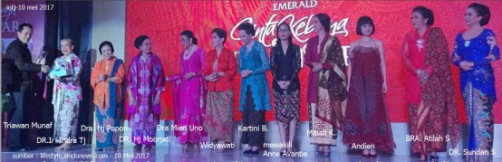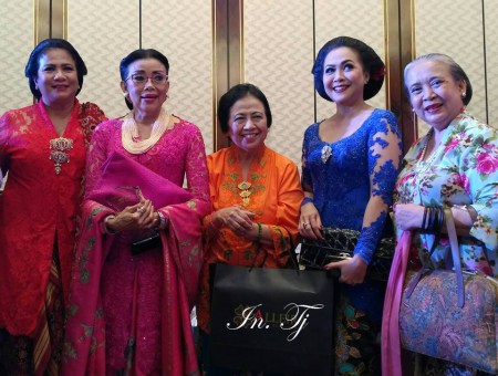 Penerima APRESIASI ki-ka : BRA Atilah Soeryadjaya (Art Director/Producer, Dancer), Dra. Mien Uno (Pemilik/Pendiri Lembaga Pendidikan Duta Bangsa), Dra. Hj. Popong Djundjunan (Anggota DPR), DR. Sundari Soekotjo (Penyanyi Kroncong/Dosen), Dr. Ir. Indra Tjahjani, SS, MLA, MMSI (Motivator Pelestraian Warisan Budaya/Pendiri Kegiatan Mbatik Yuuuk workshop/Dosen)