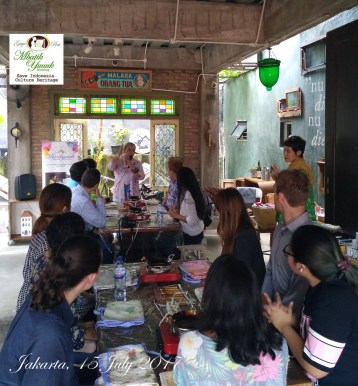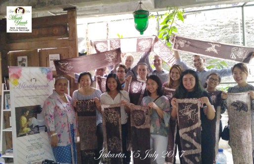 BIOLA UNIVERSITY, California, USA co-operation with UNIVERSITY of PELITA HARAPAN, Tanggerang, INDONESIA are making their own BATIK with DR. Ir. Indra Tjahjani, SS, MLA, MMSI and Miss Peni Cahyaningtyas, S,Sn @ Suwe Ora Jamu Cafe at July 15, 2017