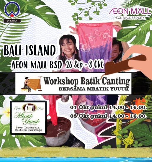 AEON MALL BSD – 1 OKTOBER 2017 & 8 OKTOBER 2017 : BATIK WORKSHOP GOOD MORNING !!!!! LET’S CELEBRATE NATIONAL BATIK DAY – OCTOBER 2017 Share this: Click to share on Facebook (Opens in new window) Facebook Click to share on X (Opens in new window) X Click to share on LinkedIn (Opens in new window) LinkedIn Like Loading... Related