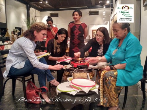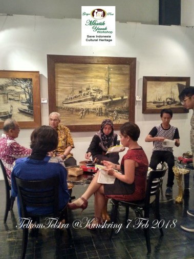 TELKOMTELSTRA & TELSTRA LOVE INDONESIA CULTURAL HERITAGE – KUNSKRING 7 FEB 2018 TELKOMTELSTRA (INDONESIA) & TELSTRA (AUSTRALIA) LOVE INDONESIA CULTURAL HERITAGE – at TUGU KUNSKRING PALEIS 7 FEB 2018 . ‘GRIYA PENI-MBATIK YUUUK’ introducing haow to make hand-written BATIK Share this: Click to share on Facebook (Opens in new window) Facebook Click to share on X (Opens in new window) X Click to share on LinkedIn (Opens in new window) LinkedIn Like Loading... Related