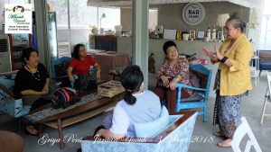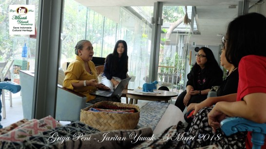Perkenalan : Griya Peni – Mbatik Yuuuk yg dimulai sejak tahnu 2000, awalnya semua putra putri mantu dan suami terlibat, namun saat ini Ibu Indra Tjahjani lebih banyak ditemani putrinya Peni Cahyaningtya, karena kakak2nya Peni sibuk dengan tugas kedinasannya. Apabila peserta Workshop Membatik cukup banyak, Pak Basuki Triwidodo (suami) juga ikut menjadi tutor.