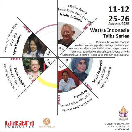 Perkumpulan Wastra Indonesia kembali menyelenggarakan berbagai perbincangan seputar wastra Nusantara, kali ini dalam rangka pameran Asian Textiles Exhibition: Shared Roots, Diverse Growth, Celebrating Asia’s Textile Traditions di Musem Tekstil Jakarta