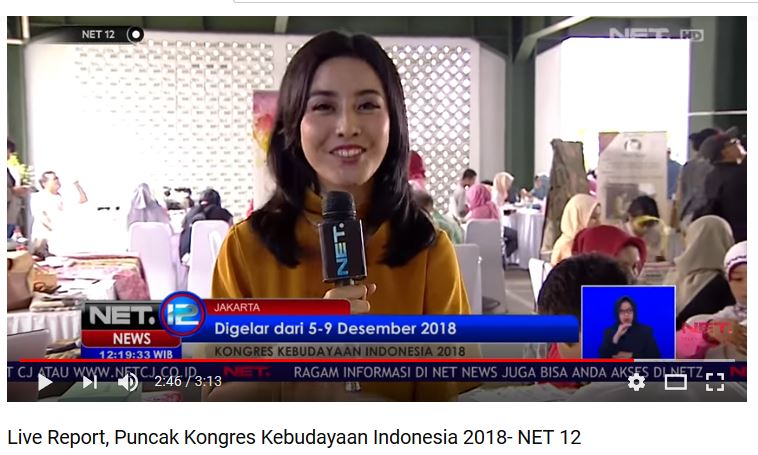 HARI KEDUA : Pada tanggal 9 Desember 2019 kami masih berada di lokasi workshop di Kongres Kebudayaan Indonesia 2018 , dapat dilihat diliput Net TV Life Report, berikut https://www.youtube.com/watch?v=d6dPfEB8Np
