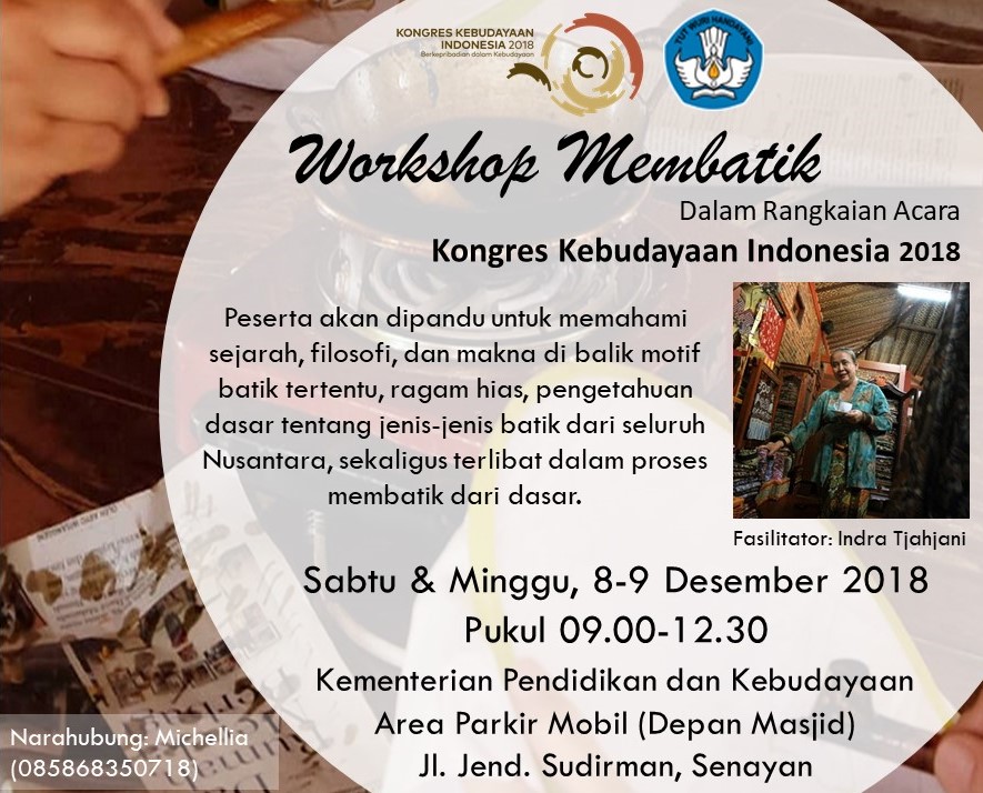 Selamat pagi, kami ‘Griya Peni-Mbatik Yuuuk’ mewakili ‘Wastra Indonesia’ berterima kasih atas dilibatkannya kami di acara Kongres Kebudayaan Indonesia 2018 pada tanggal 8 dan 9 Desember 2018.