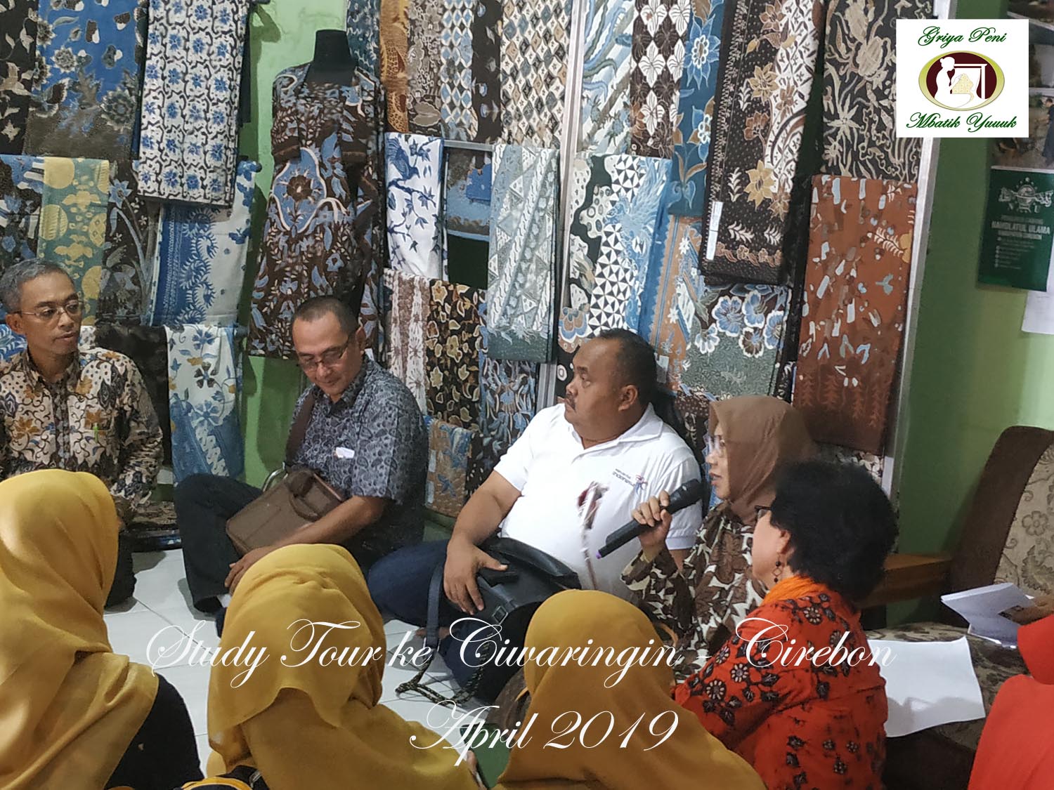 STUDY TOUR KE CIWARINGIN CIREBON bersama Dinas BudPar Tangerang, April 2019, untuk melihat kegiatan Koperasi Batik Ciwaringin, Cirebon sebagai bahan study banding. Sentra Batik Ciwaringin Cirebon menghasilkan Batik dengan proses pewarnaan alam, yang menjadi ciri khas mereka.
