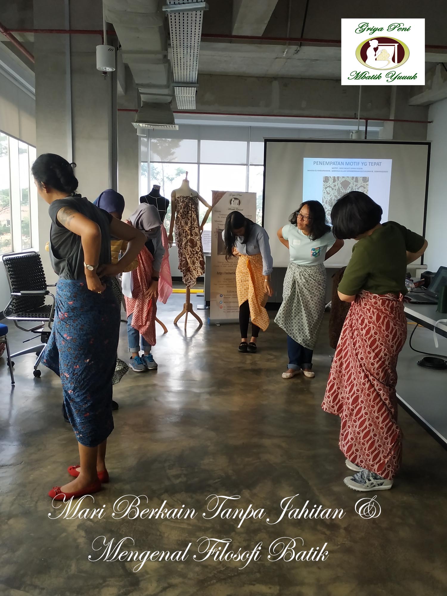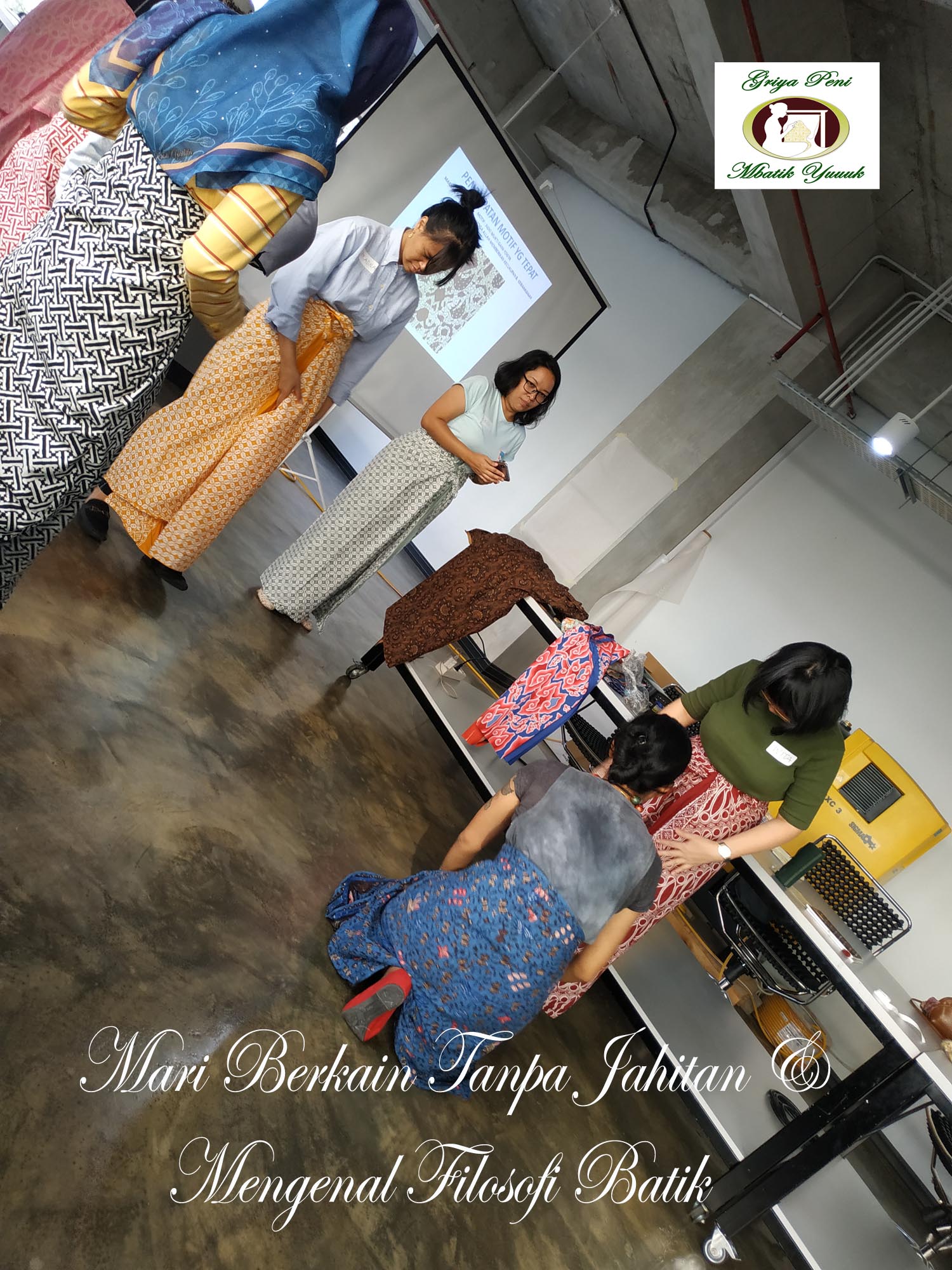 JARITAN YUUUK PAKEM vs JAMAN NOW & MENGENAL FILOSOFI BATIK – 6 JULI 2019 Kami senang berbagi & berdiskusi tentang BUDAYA MARI BUDAYAkan kembali MEMAKAI KAIN & KEBAYA setiap hari. Semua workshop kami selalu didahului dengan berbagi tentang FILOSOFI dibalik Ragam Hias Batik Share this: Click to share on Facebook (Opens in new window) Facebook Click to share on X (Opens in new window) X Click to share on LinkedIn (Opens in new window) LinkedIn Like Loading... Related