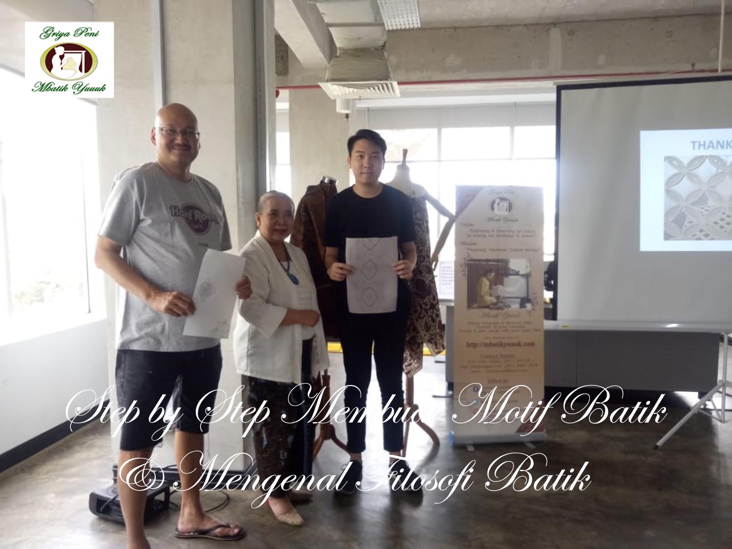 DR. Ir. Indra Tjahjani senang berbagi tentang Filosofi dibalik Ragam Hias Batik sebelum memberikan materi STEP BY STEP membuat Desain Batik di Jakarta Creative Hub 6 Juli 2019, berikut dokumentasinya.