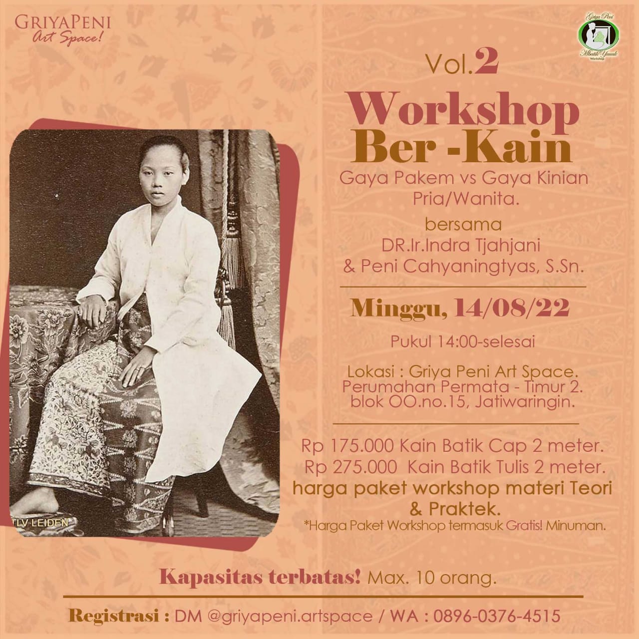 Ibu Dr. Ir. Indra Tjahjani & Mbak Peni Cahyaningtyas , S.Sn akan berbagi sekilas tentang Sejarah Batik & Berkain