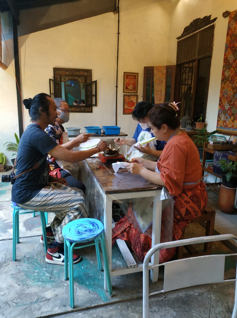 Bertukar pikiran tentang Filosofi Batik , bagaimana memakai Ragam Hias Batik dengan benar yang dilanjutkan dengan mengenal alat canting dan malam lilin panas yang ditorehkan pada selembar kain mori, sehingga tercipta karya dengan rasa keindahan yang berbeda-beda