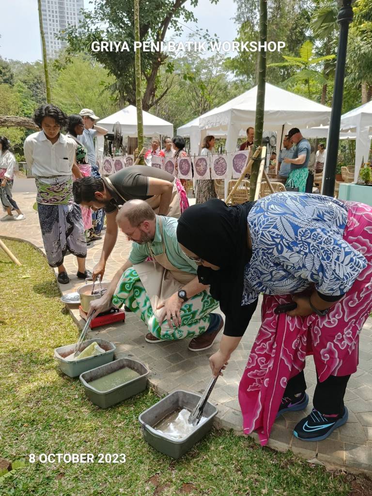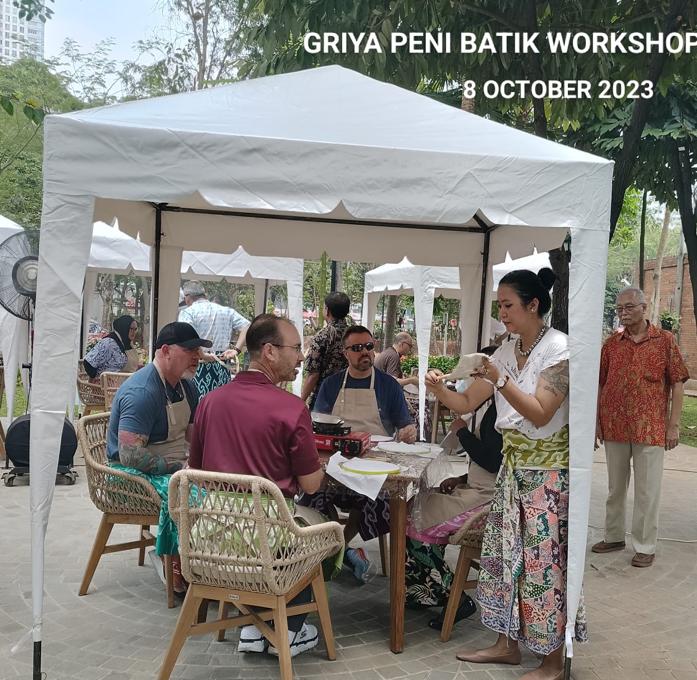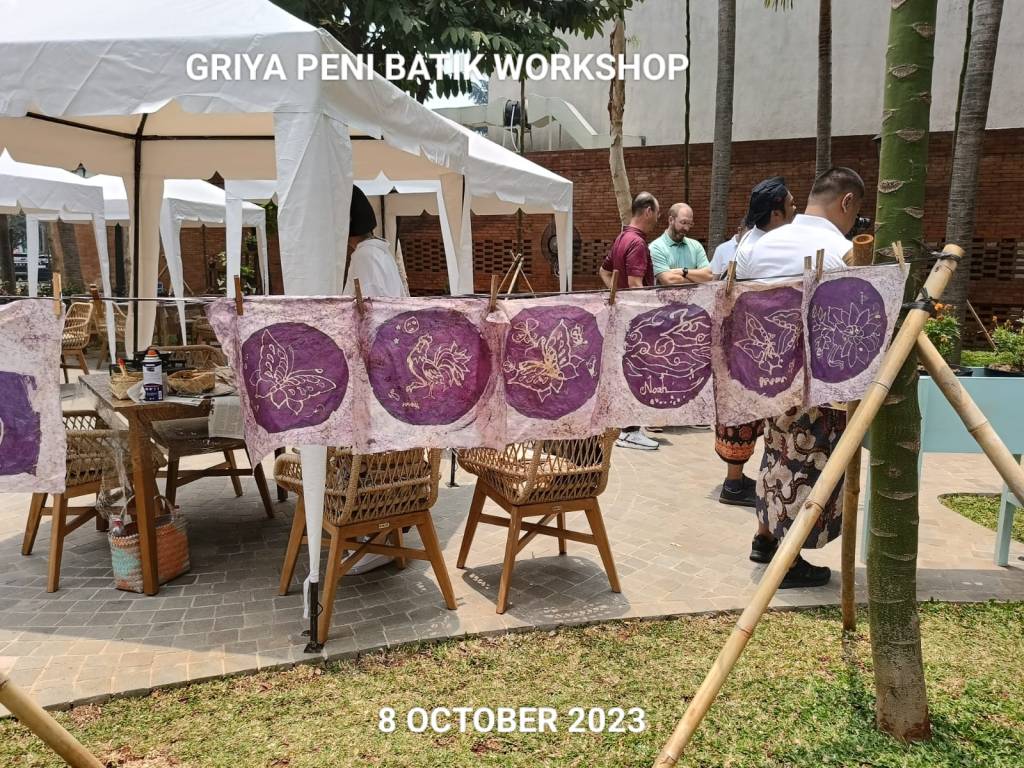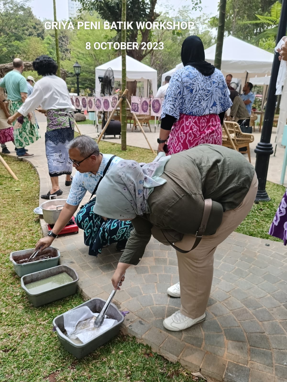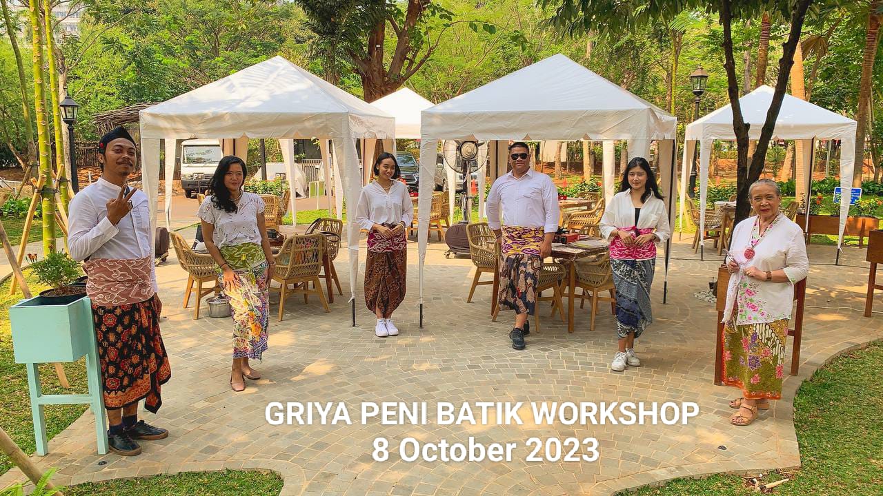 Griya Peni is introducing the process of making Batik, as the Indonesian World Heritage, to ExxonMobil , on Sunday, October 8, 2023 at Plataran – Hutan Kota – South Jakarta.