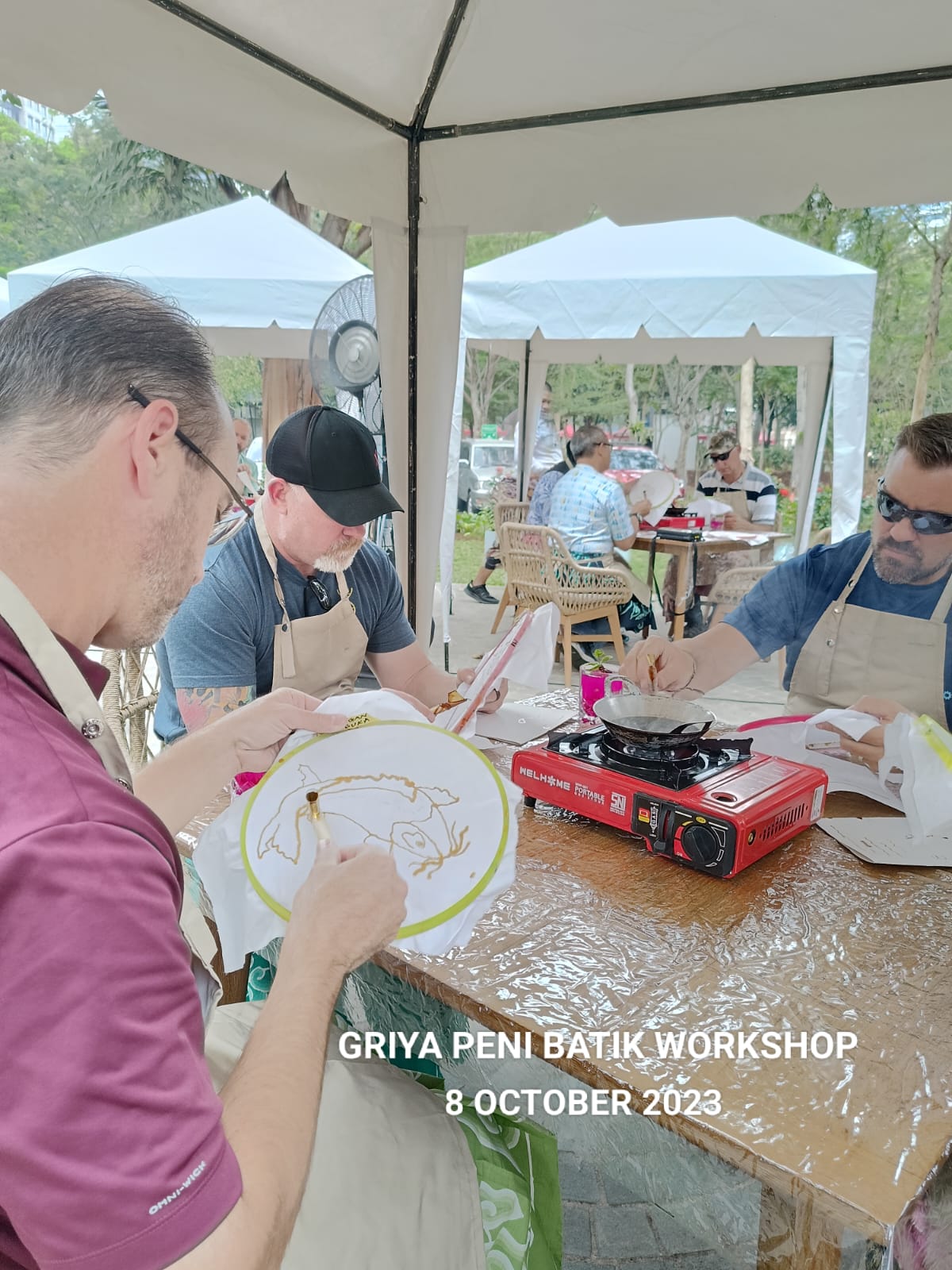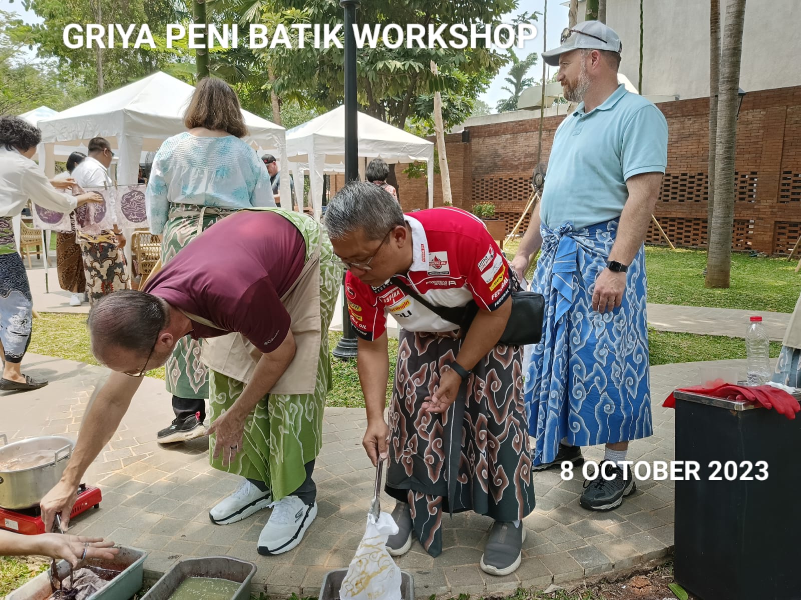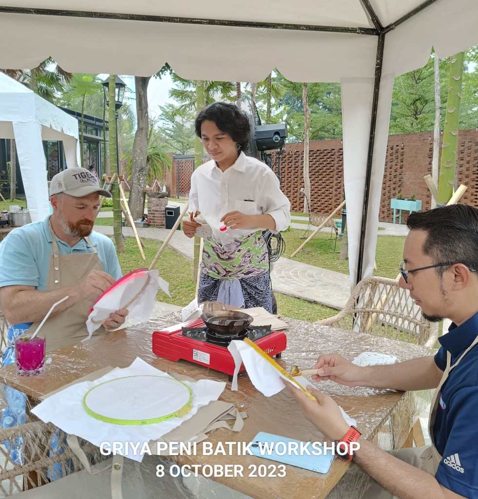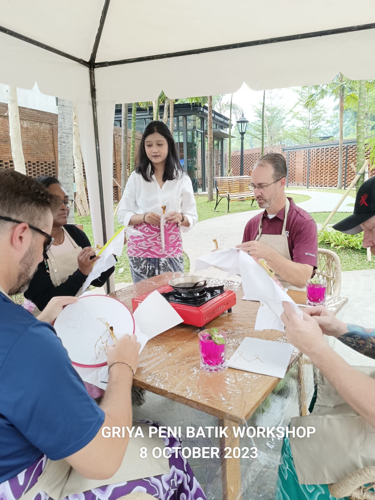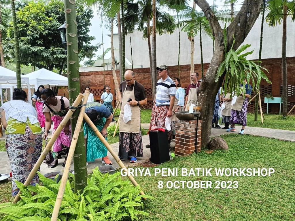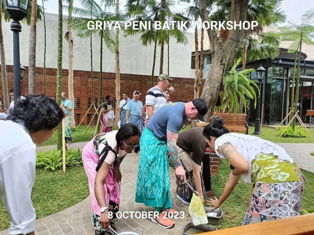 Griya Peni is introducing the process of making Batik, as the Indonesian World Heritage, to ExxonMobil , on Sunday, October 8, 2023 at Plataran – Hutan Kota – South Jakarta.