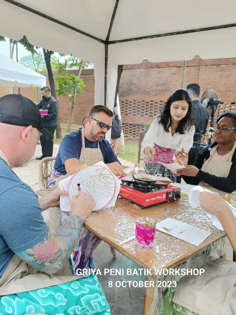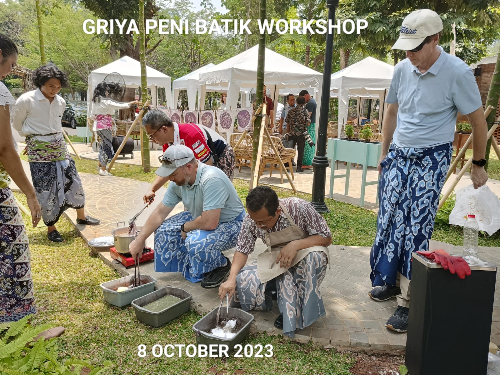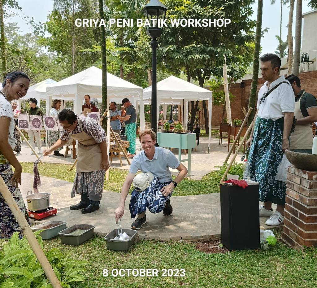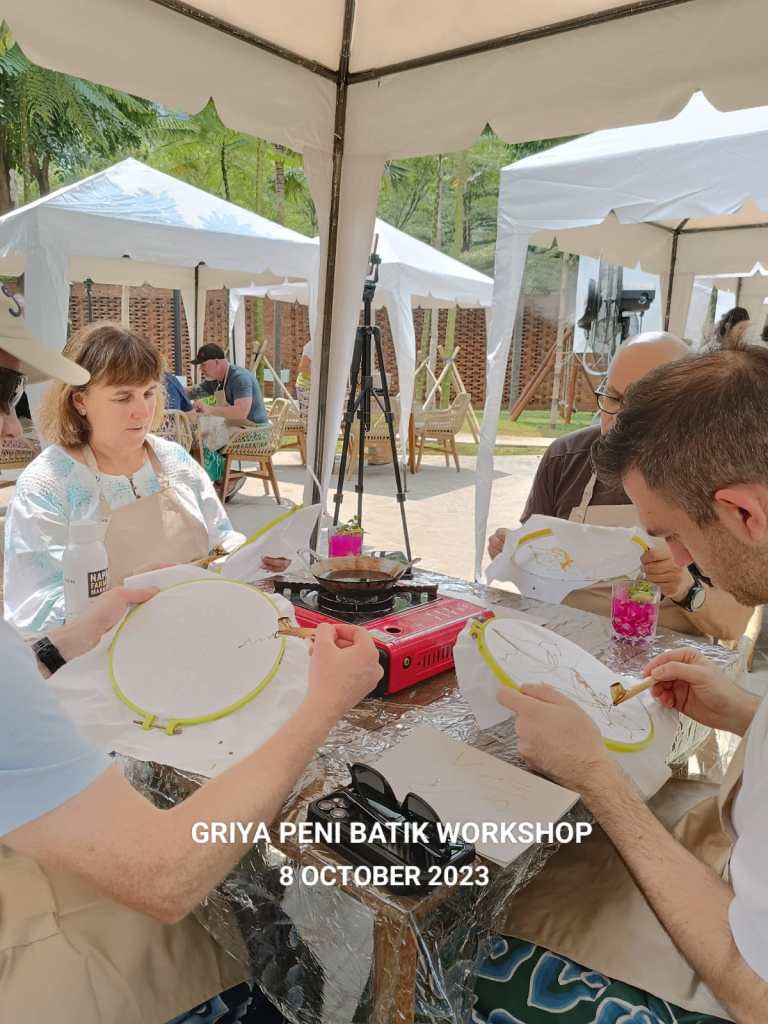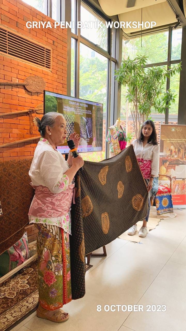 Griya Peni is introducing the process of making Batik, as the Indonesian World Heritage, to ExxonMobil , on Sunday, October 8, 2023 at Plataran – Hutan Kota – South Jakarta.