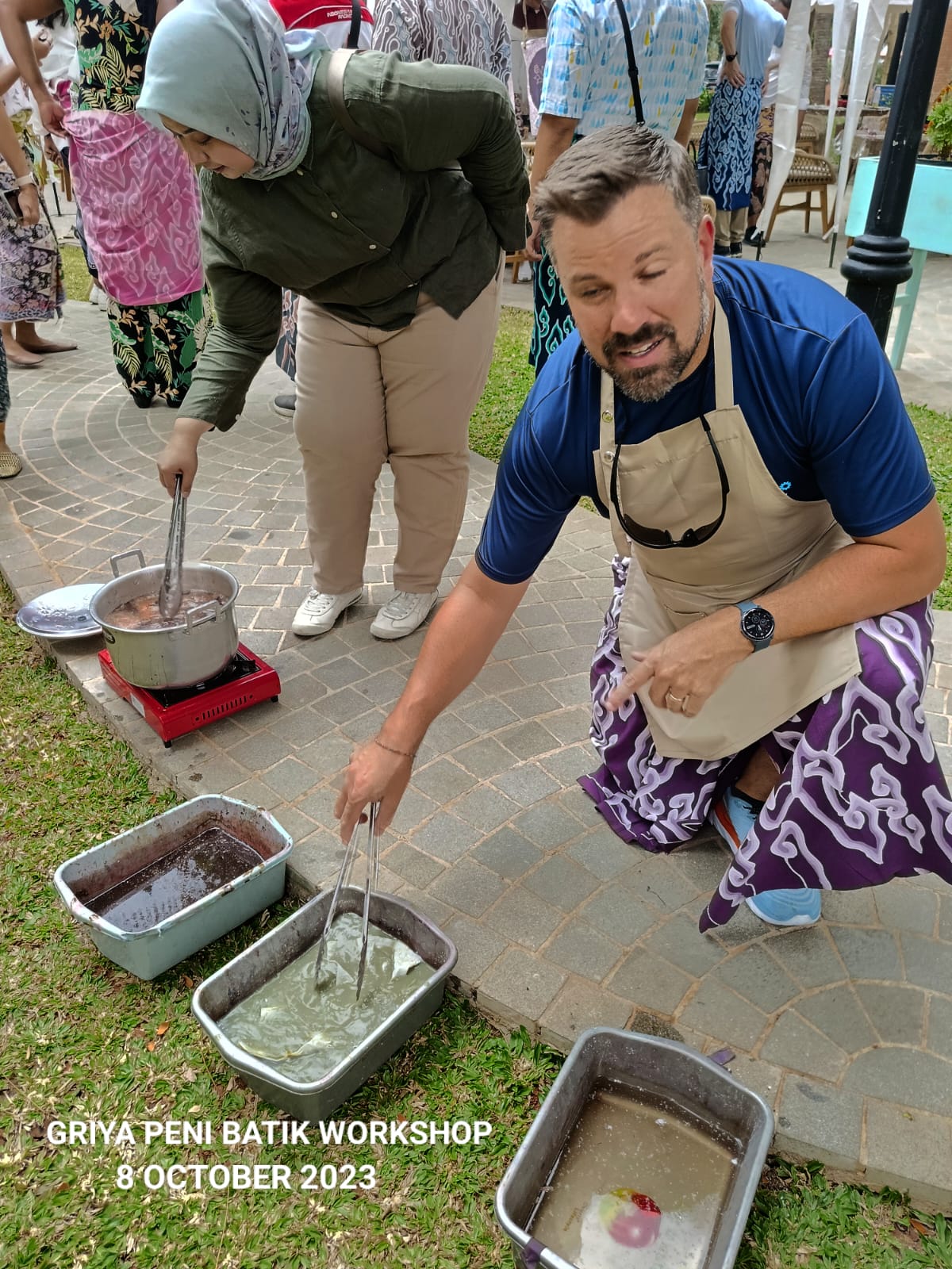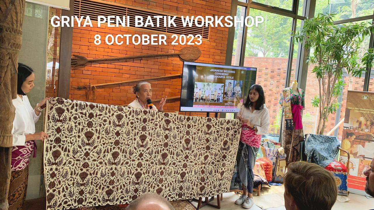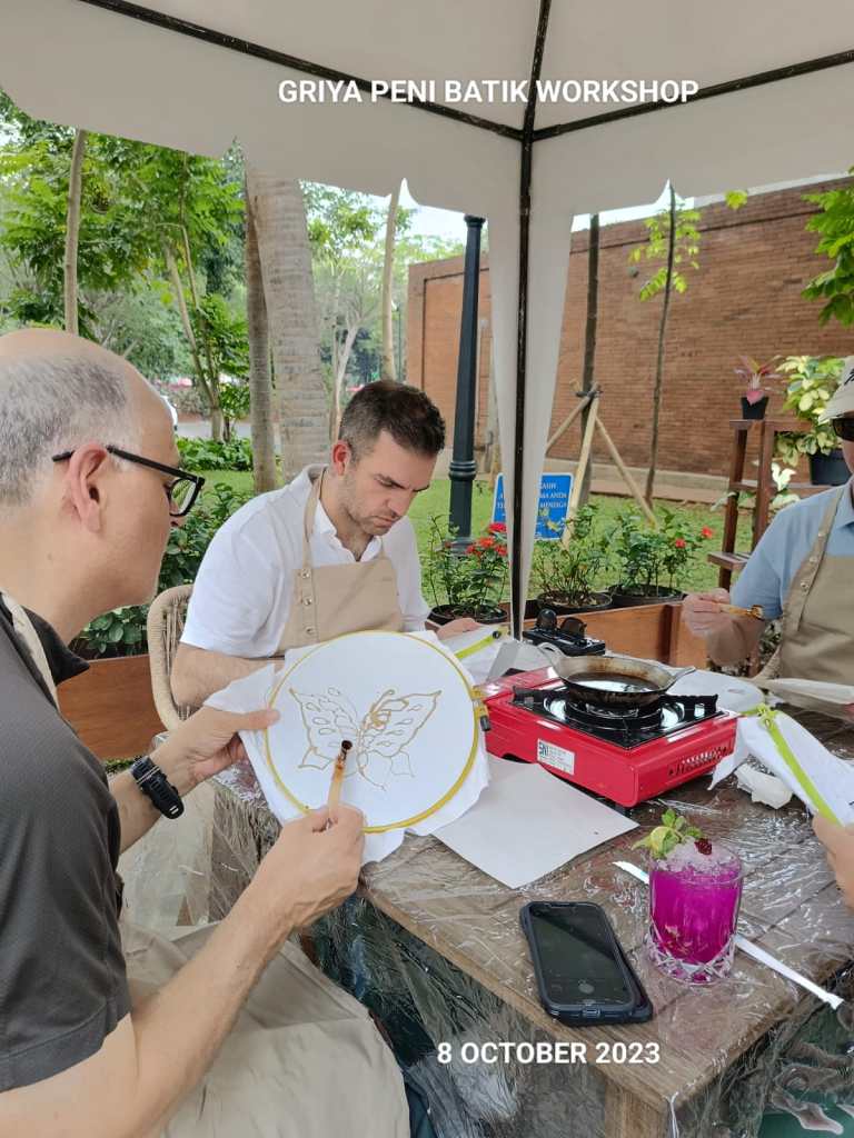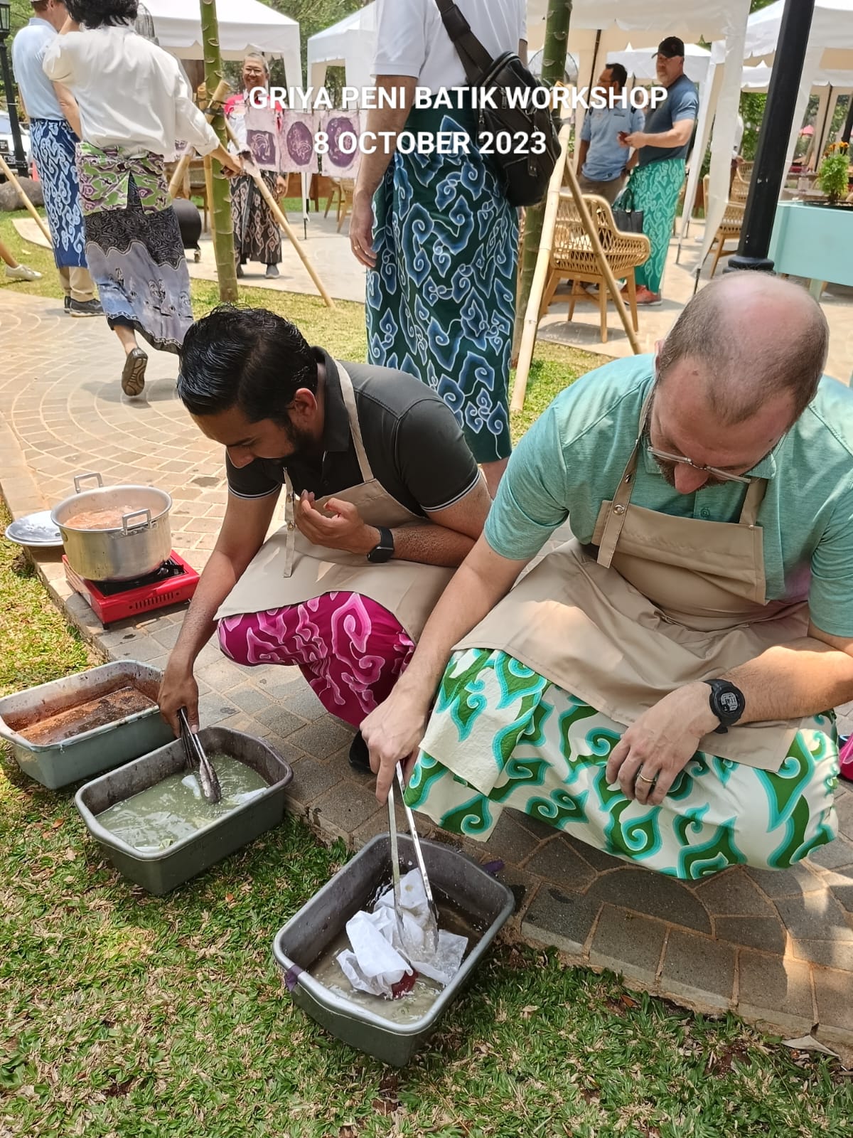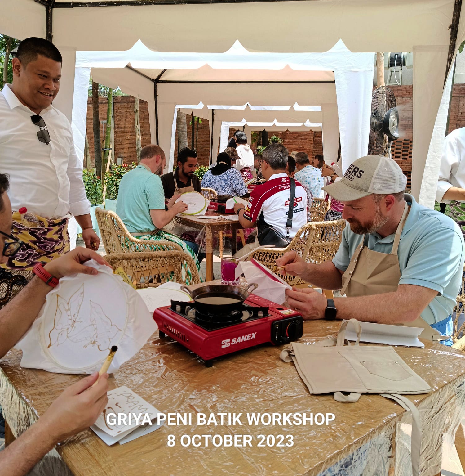 Griya Peni is introducing the process of making Batik, as the Indonesian World Heritage, to ExxonMobil , on Sunday, October 8, 2023 at Plataran – Hutan Kota – South Jakarta.