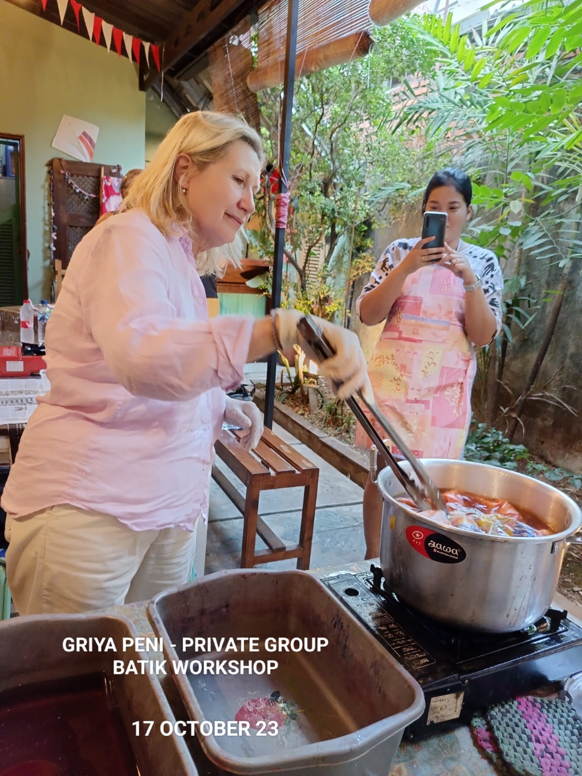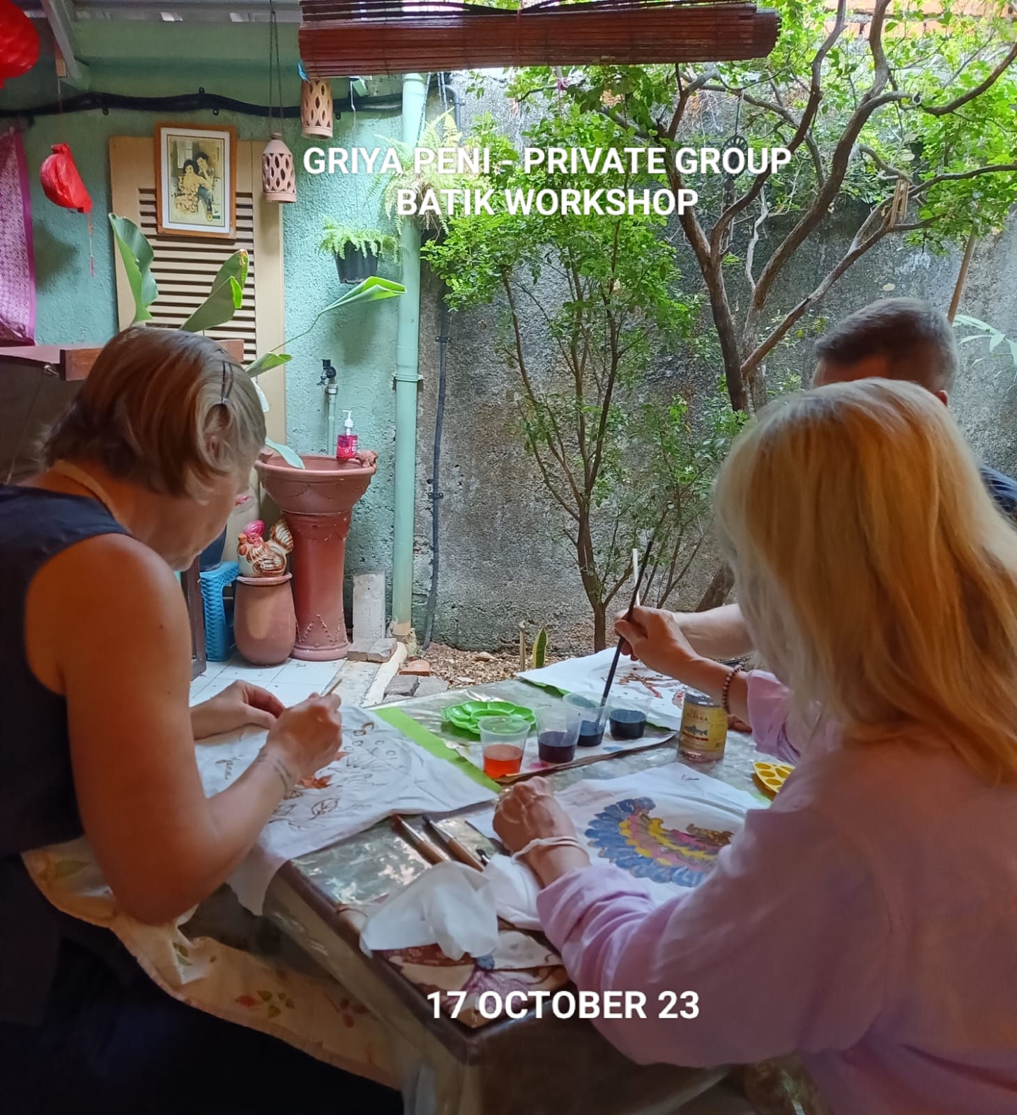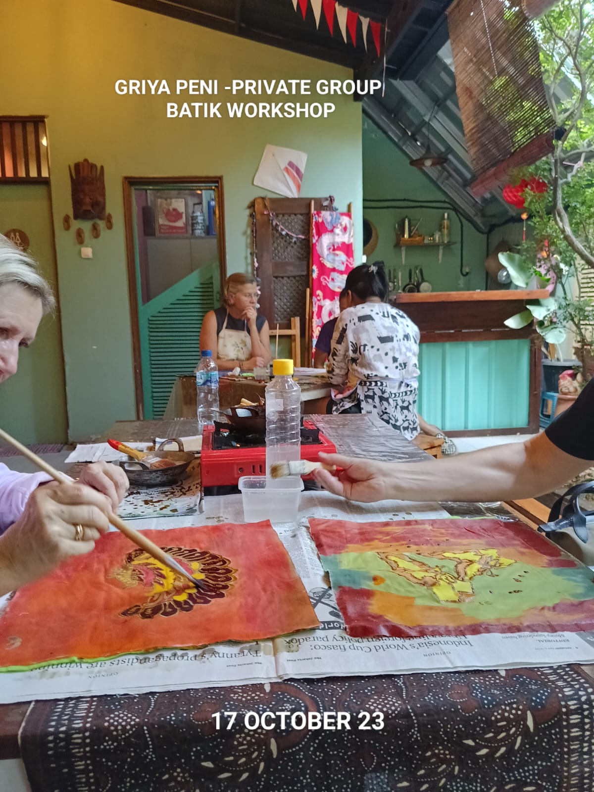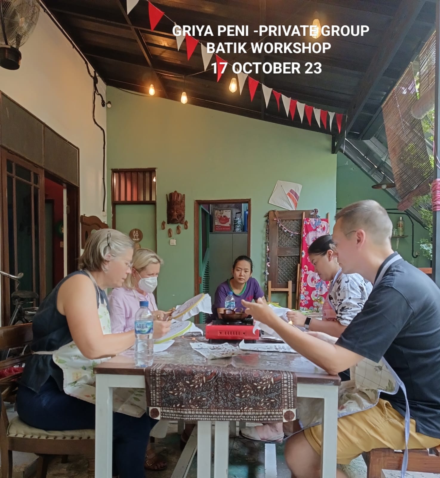 Thank you to everybody for making batik in Griya Peni with Mrs Indra Tjahjani and Mrs Peni Cahyaningtyas, please come again and ask your friend to come along. God bless you all.