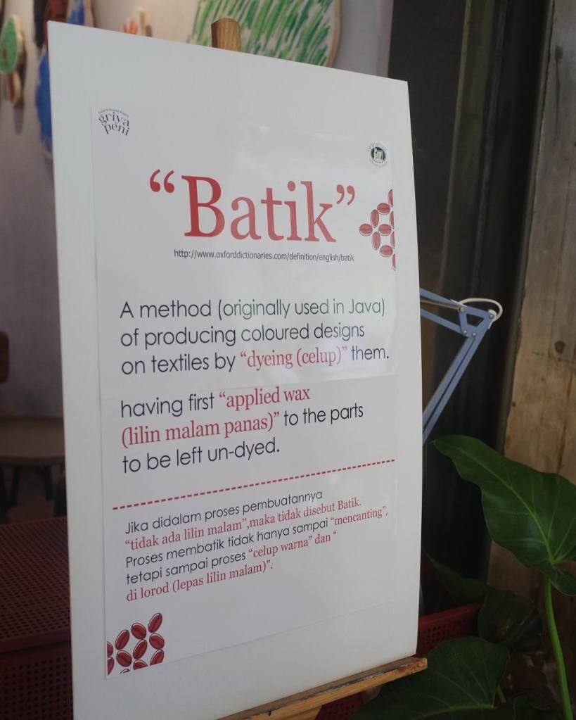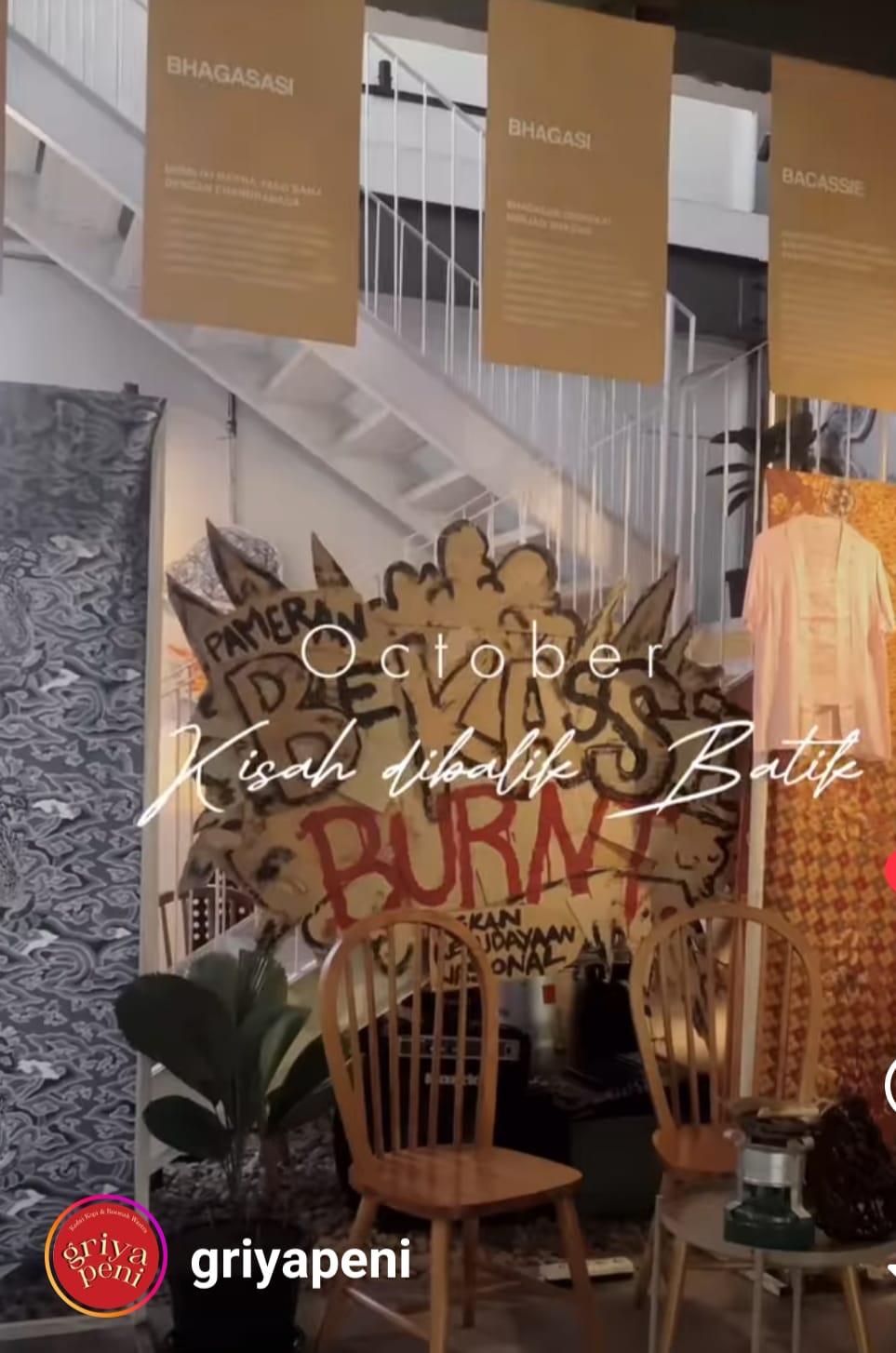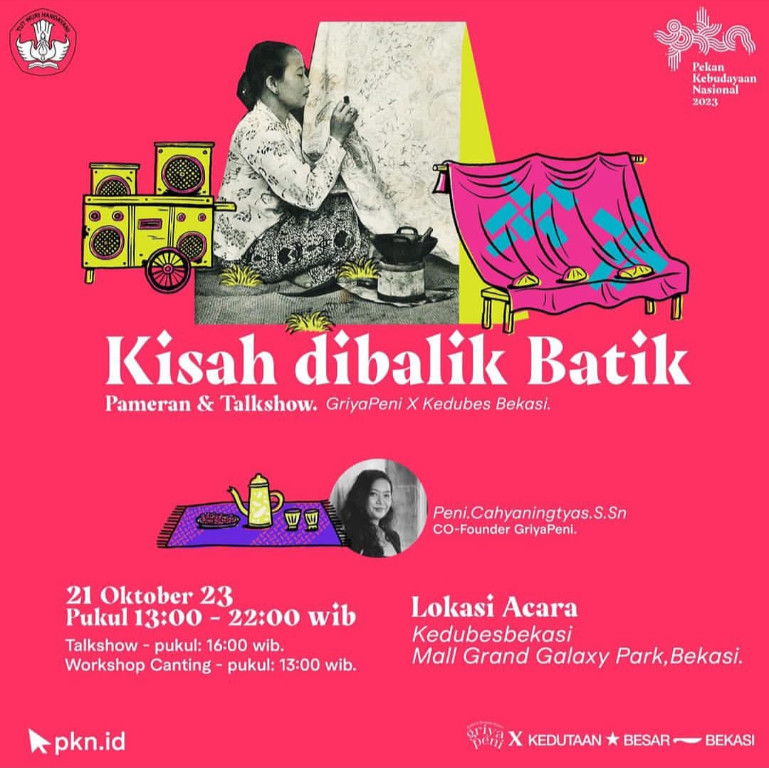 Dalam rangka Pekan Kebudayaan Nasional, Coffeeshop Kedubes Bekasi bekerjasama dengan Griya Peni, menyelenggarakan Pameran Batik satu hari , workshop pengenalan proses Membatik, serta Story Telling yg berhubungan dengan Batik.