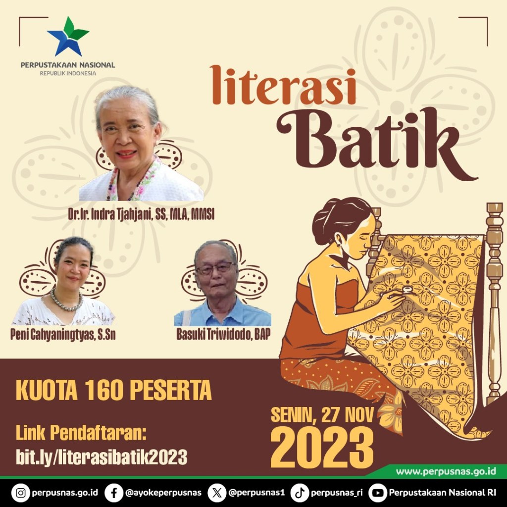 Suatu kehormatan bagi kami Griya Peni – Mbatik Yuuuk yang didirikan oleh Ibu Dr. Ir. Indra Tjahjani, SS, MLA, MMSI diperkenankan berbagi di acara LITERASI BATIK yang diadakan oleh PERPUSTAKAAN NASIONAL RI .