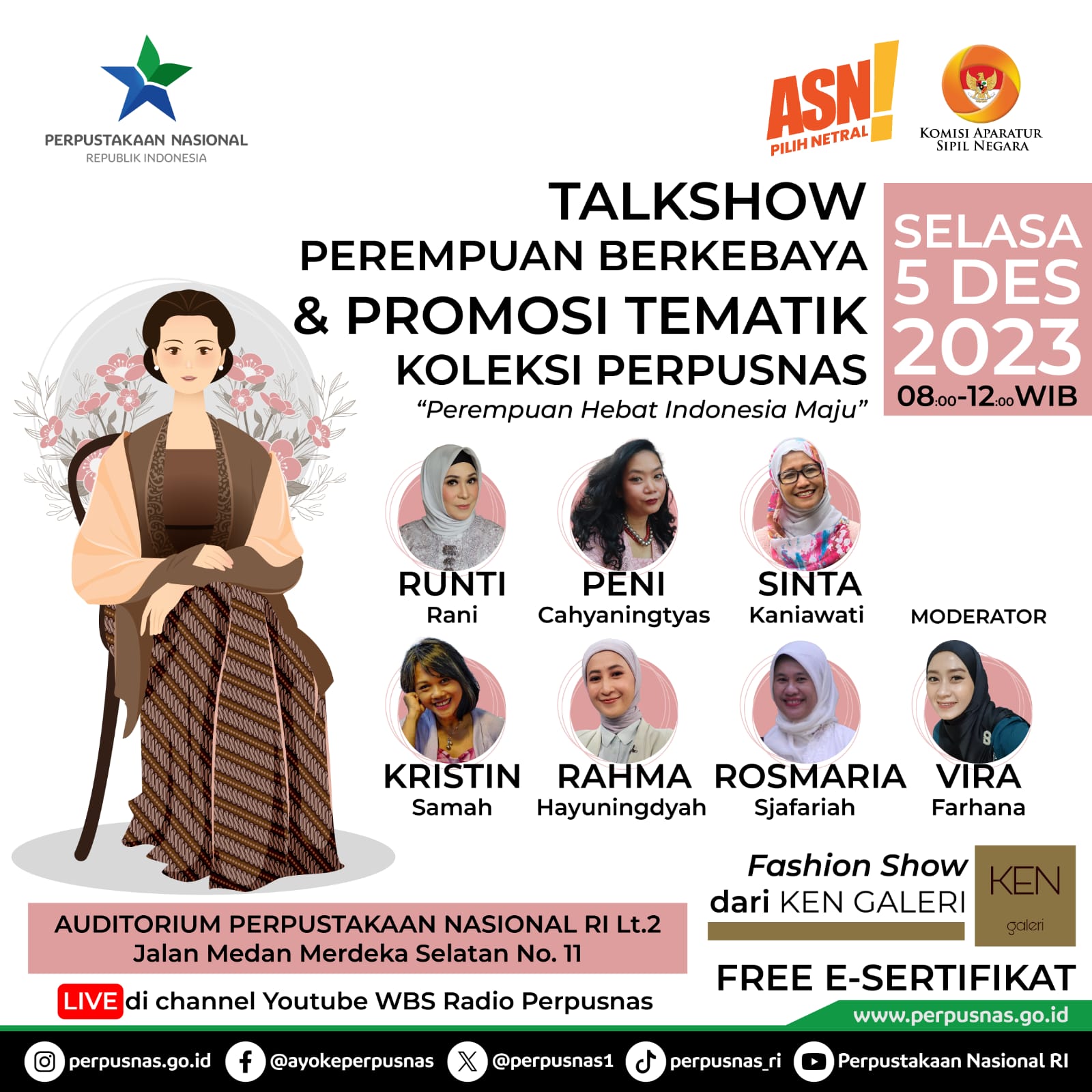 TALKSHOW PEREMPUAN BERKEBAYA di PERPUSNAS Share this: Click to share on Facebook (Opens in new window) Facebook Click to share on X (Opens in new window) X Click to share on LinkedIn (Opens in new window) LinkedIn Like Loading... Related