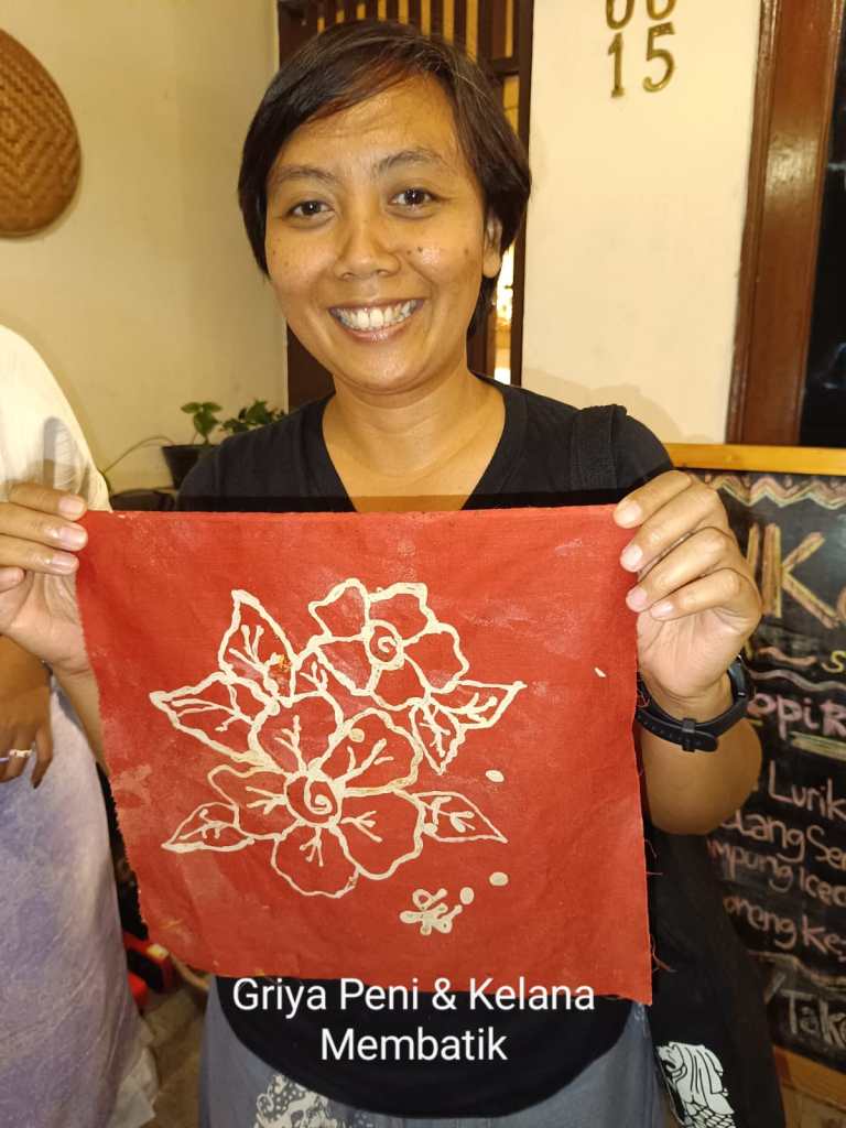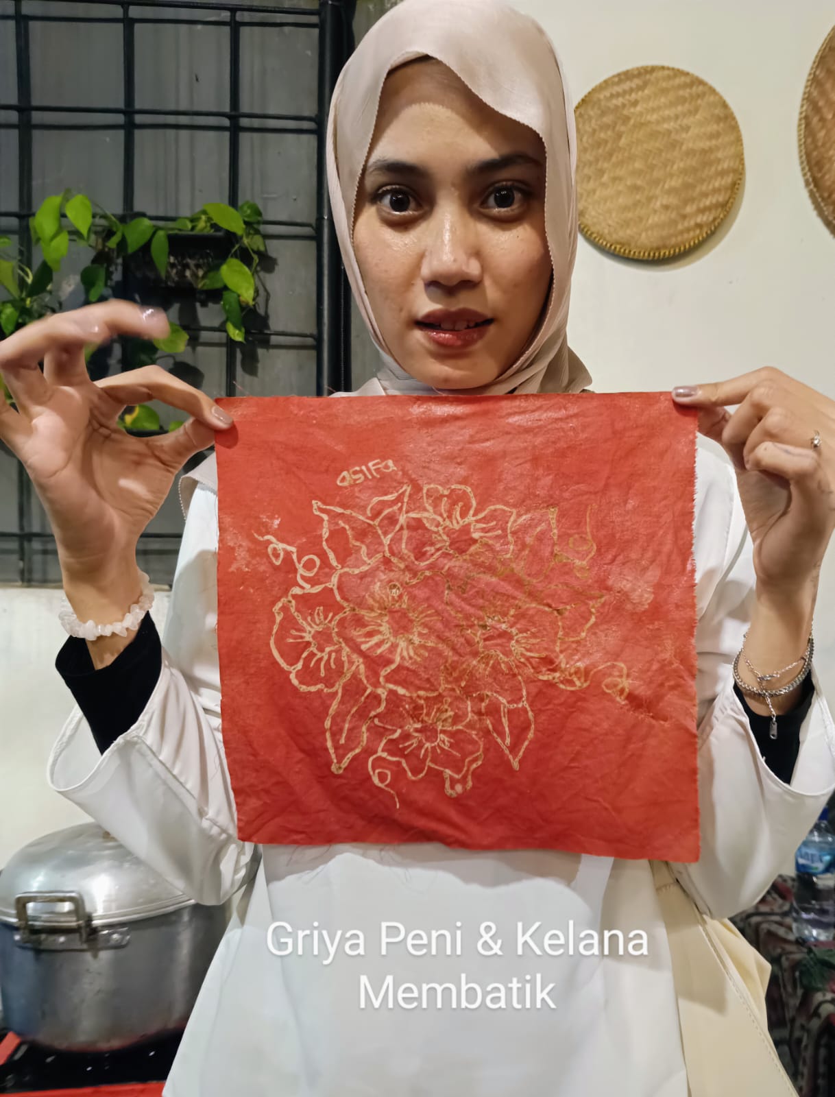 Setelah Mencanting dilanjutkan diwarnai dengan cara di celup dg pewarna sintetis.