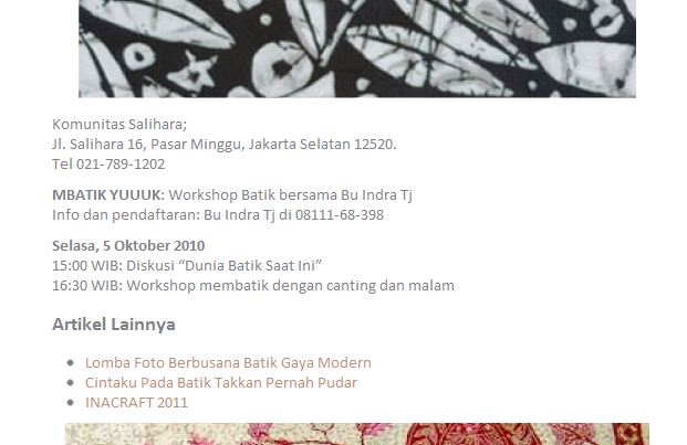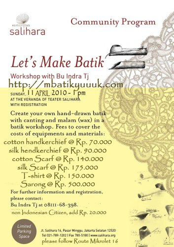 http://salihara.org/event/2010/07/06/workshop-batik-tulis-dengan-canting-malam-bersama-bu-indra-tj
