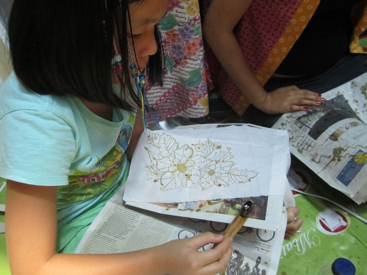 Aurel sangat sabar dan telaten, membatik dg rinci