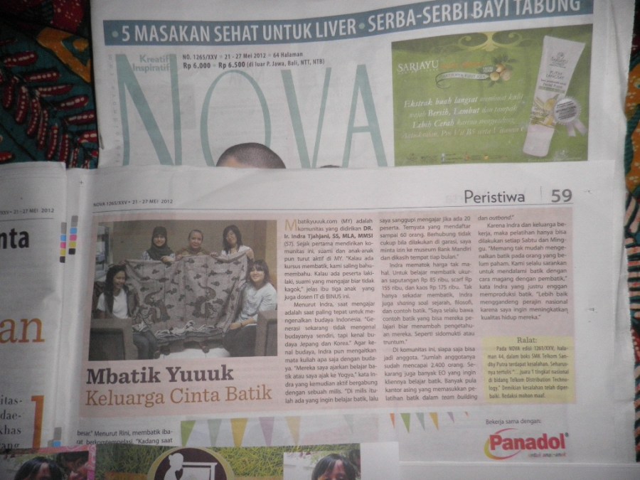 Komunitas Pencinta Kain Batik – Bersama Lestarikan Budaya – di angkat oleh Tabloid NOVA, terimakasih NOVA.