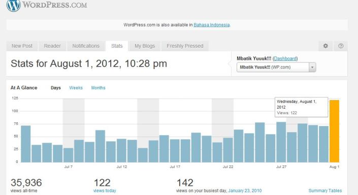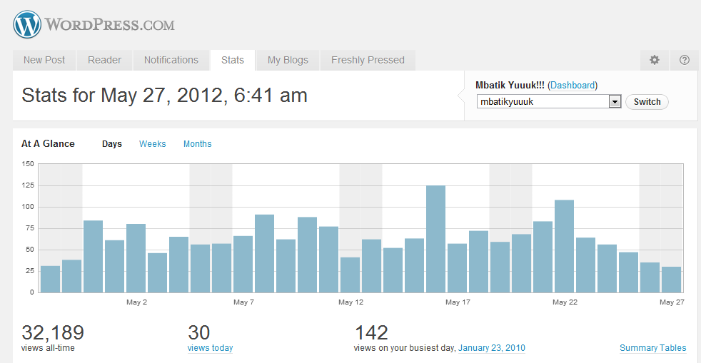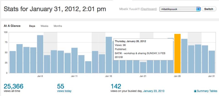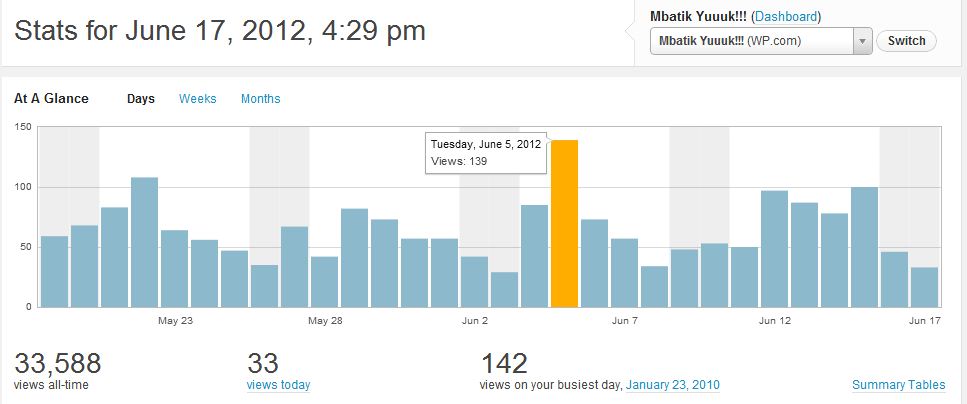 Mbatikyuuuk viewer up to March 30, 2012 is 28,812 and amazingly on March 19, 2012 is 100 viewer